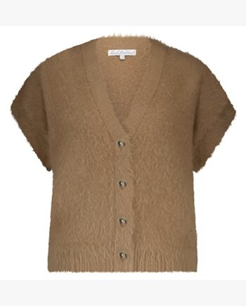 Red Button Sleeveless Fuzzy Gilet – Almond