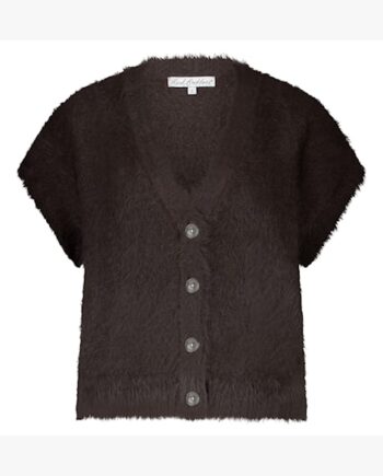 Red Button Sleeveless Fuzzy Gilet – Espresso