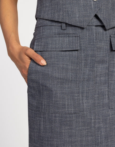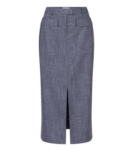 De Salana Rok is een stijlvolle aanvulling op je garderobe. Deze rok heeft klepzakken, een hoge split aan de voorkant en een midi-lengte voor een moderne uitstraling.