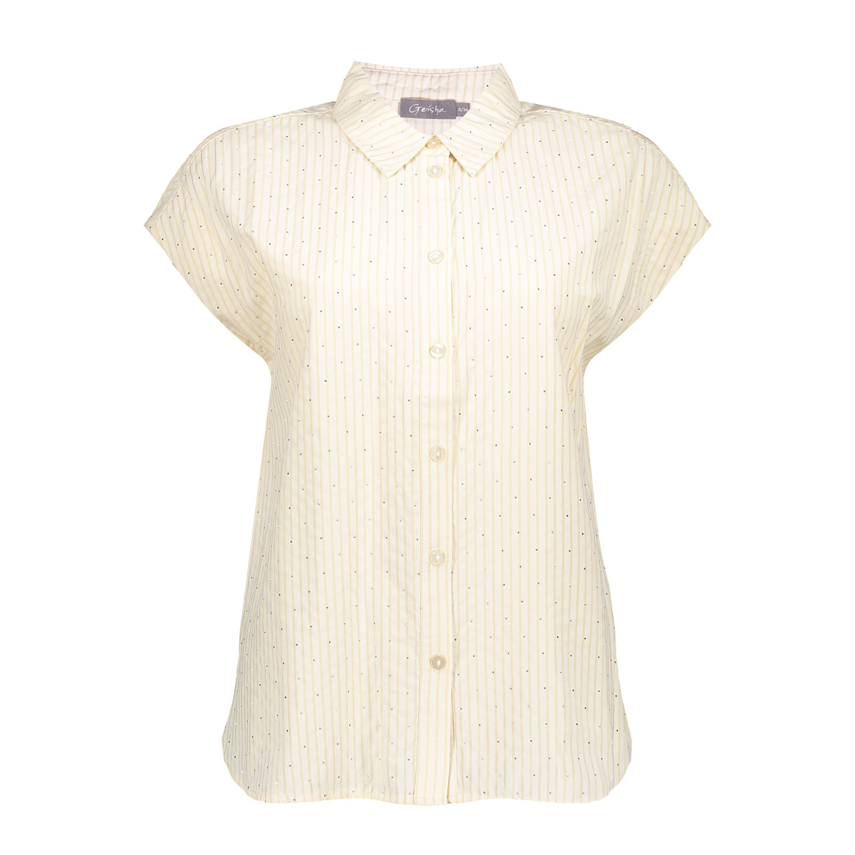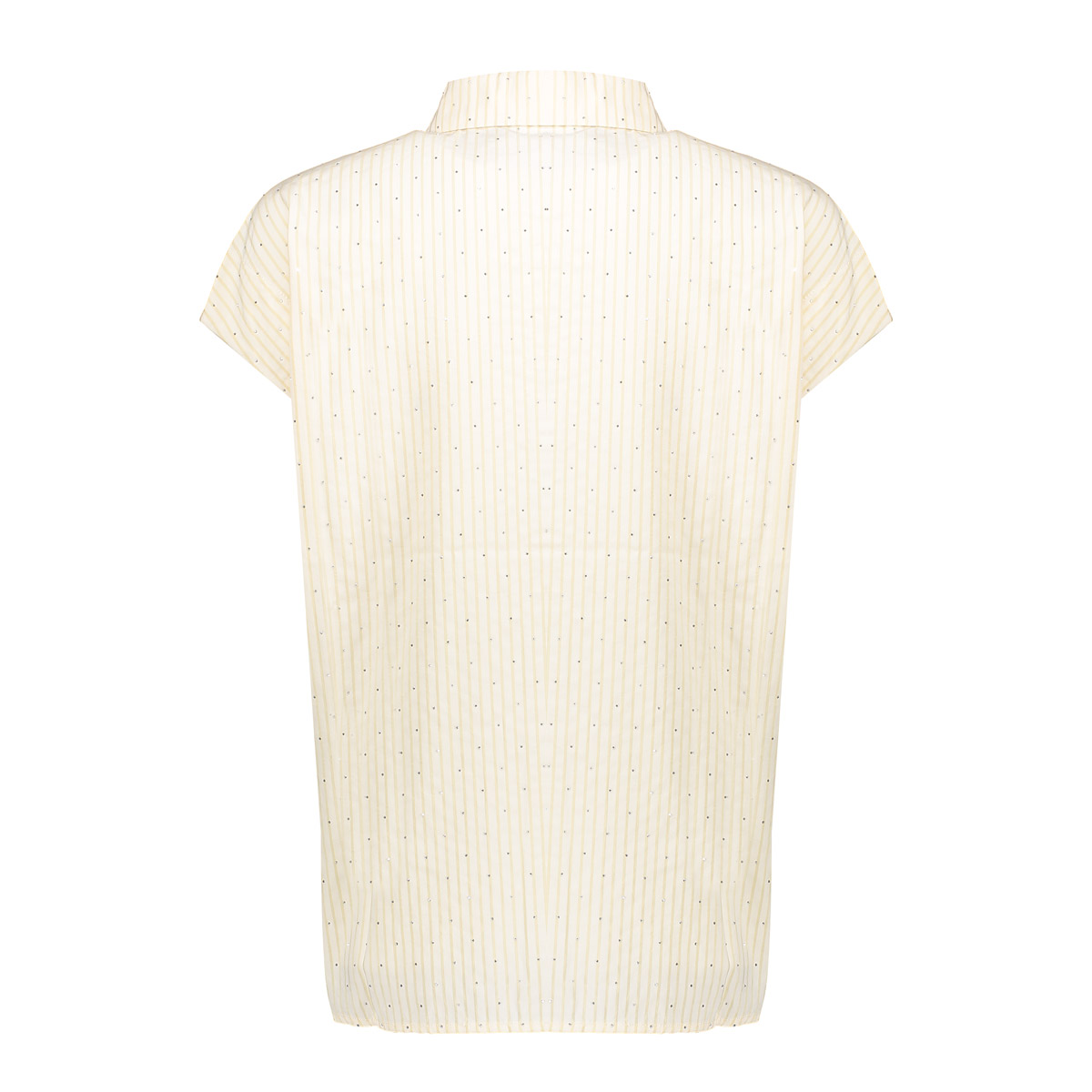 Deze blouse uit de S26-1 collectie is uitgevoerd in een zachte crème tint met een verfijnd verticaal streeppatroon. De subtiele rhinestones geven een elegante sparkle, terwijl de aangeknipte mouw en klassieke kraag zorgen voor een tijdloze uitstraling. Perfect voor zowel een verzorgde werklook als een stijlvolle dagelijkse outfit.