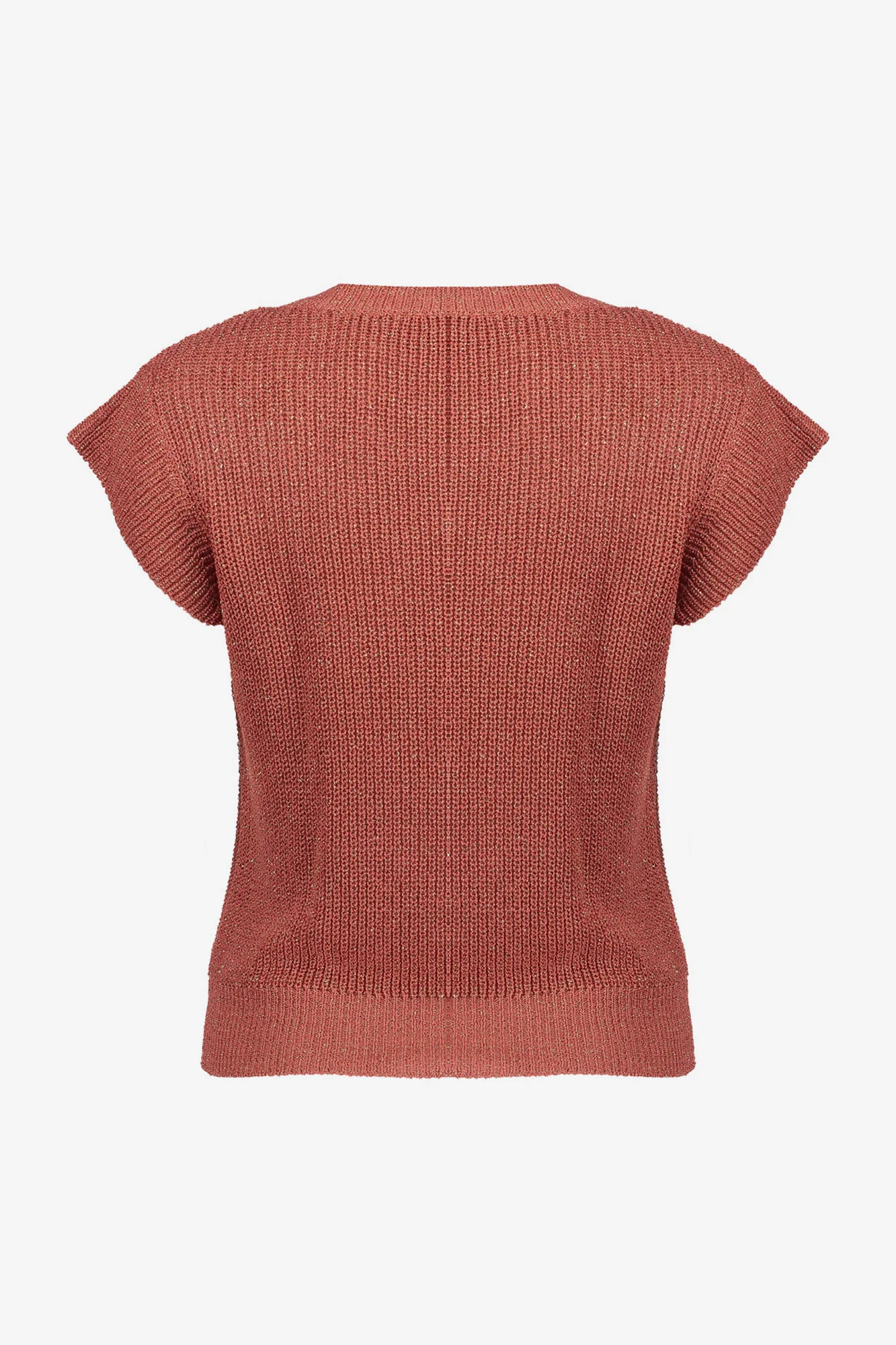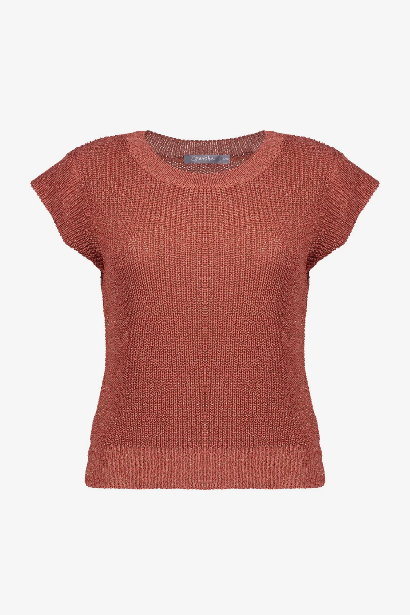 Deze top uit onze S26-1 collectie is een stijlvolle knit in koraalkleur met een subtiele sparkle. De aangesloten pasvorm en ronde hals zorgen voor een veelzijdige uitstraling. De fijne lurex draad geeft een zachte glans, terwijl de korte mouw met ribboord een sportief accent toevoegt.
