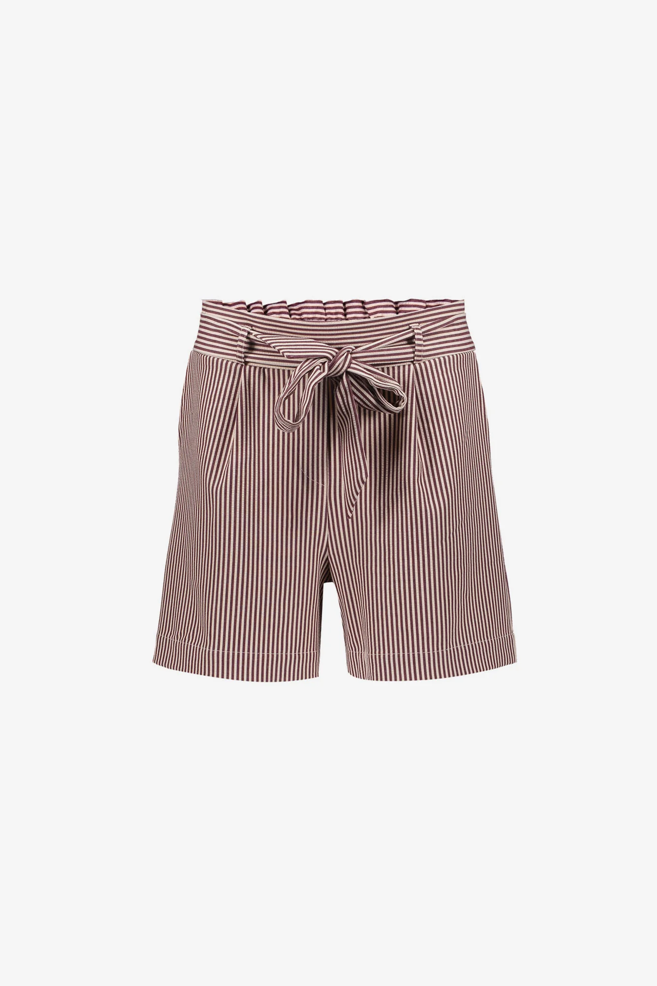 Deze short uit onze S26-1 collectie is een stijlvolle must-have met een speelse twist. De high-waisted fit en subtiele paperbag-taille zorgen voor een flatterend silhouet, terwijl de strikceintuur zorgt voor een nonchalant accent. De fijne bordeaux strepen geven een moderne, zomerse uitstraling.