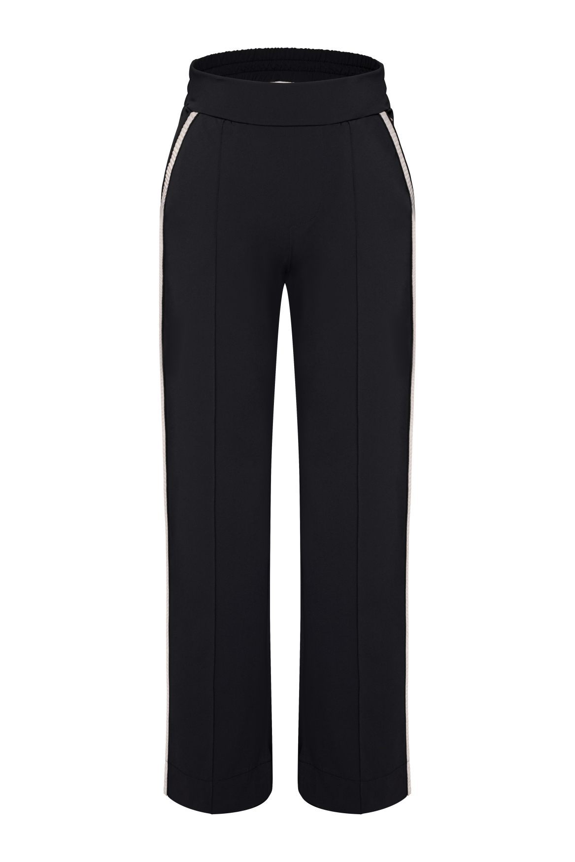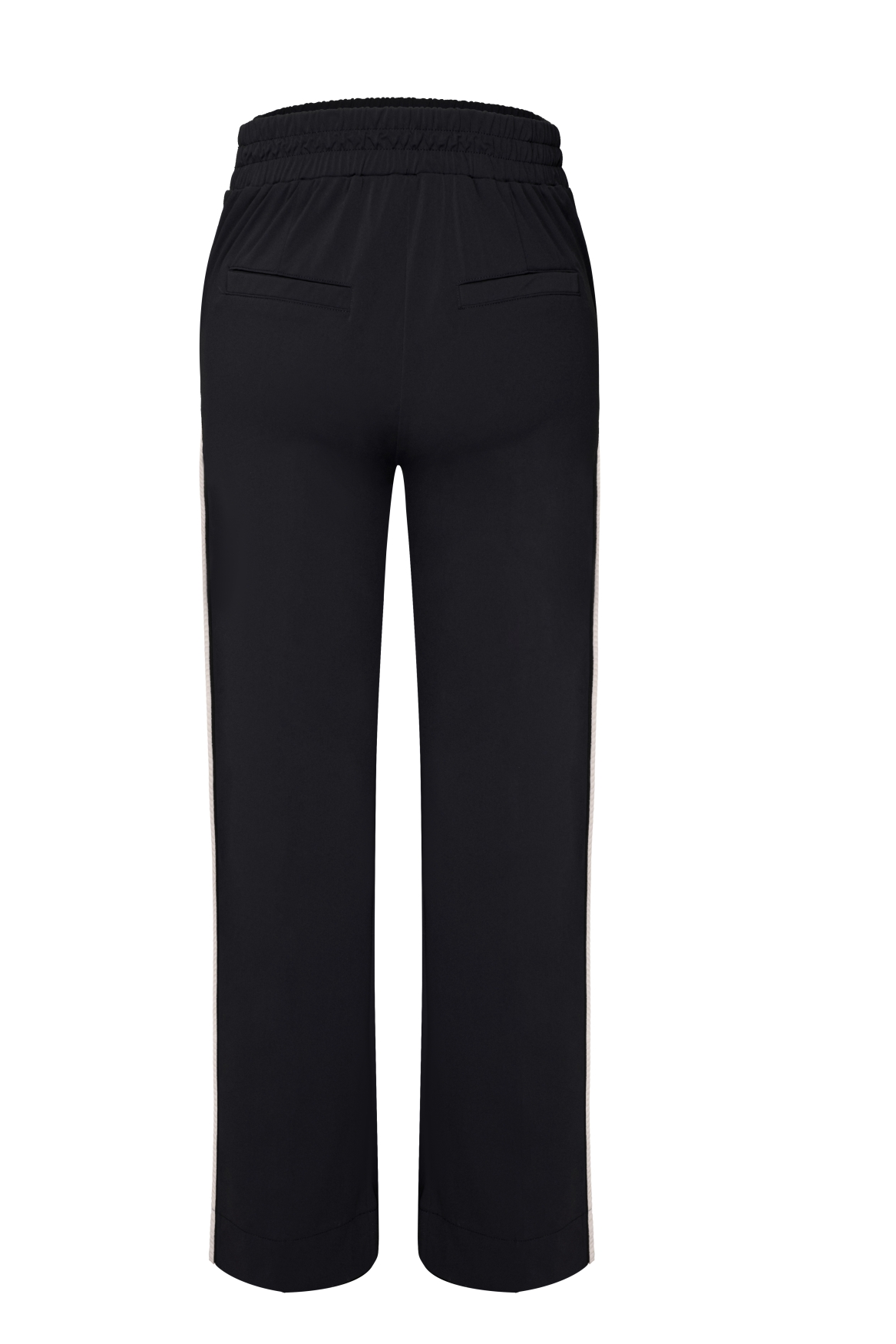 Het ontwerp valt op door de high‑waist pasvorm met een elegante, overlappende tailleband die het silhouet direct verfijnt. De rechte, modern vallende pijp zorgt voor een tijdloze uitstraling en een mooi lang silhouet. De contrasterende zijstrepen geven de Joyce Pants een sporty‑chic accent, terwijl de steekzakken voor en de faux achterzakken het geheel een nette finish geven.