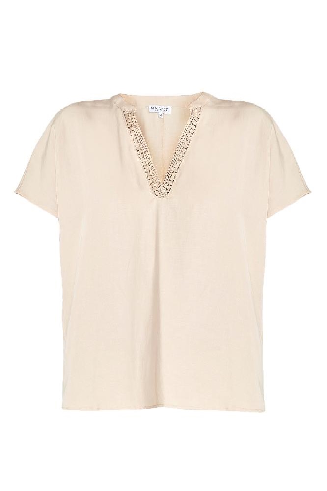 De Josina top heeft een mooi kanten sierstiksel aan de boord. Materialen: 88% Cotton / 12% Linen