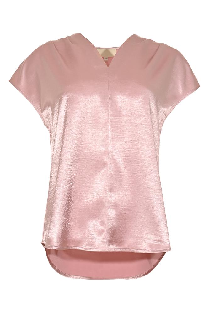 De Melice top elegante t-shirt dat stijl en luxe combineert. Dit shirt heeft een verfijnde satijnlook en een flatterende v-hals.