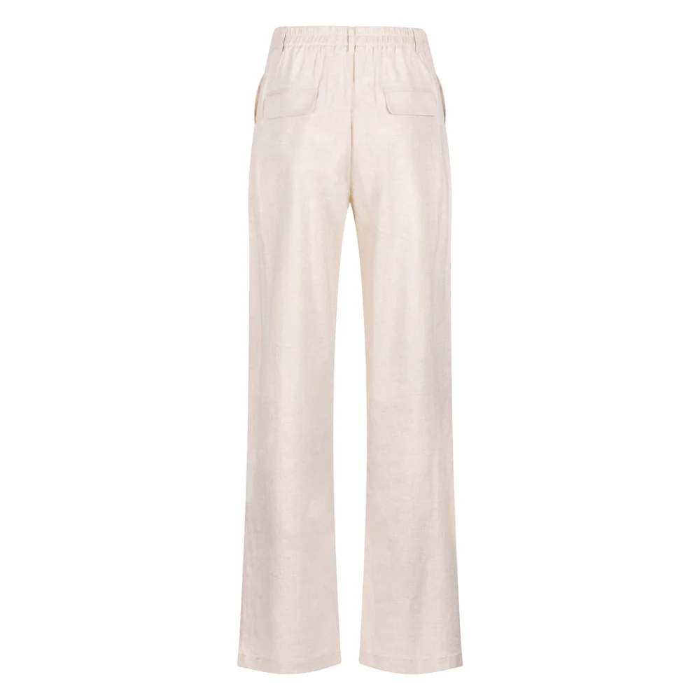 Deze broek in sand is gemaakt van een luchtige mix van viscose en linnen en heeft een op maat gemaakte pasvorm met elastiek aan de achterkant voor optimaal comfort. Mooi te combineren met de Daniel top voor een complete, stijlvolle look voor het voorjaar en de zomer.