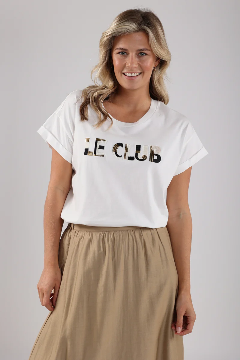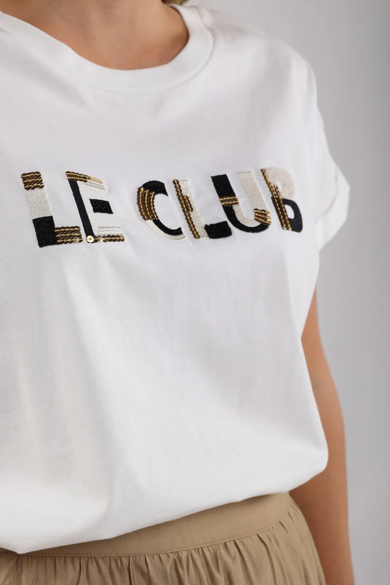 Het Femke Le club shirt is hét perfecte witte T-shirt voor het voorjaar. Gemaakt van zacht katoen en met een sprankelende “Le Club” opdruk aan de voorkant, brengt het net dat beetje extra flair. De aangesloten pasvorm zorgt voor een flatterende look, ideaal om te dragen onder je favoriete jasje of met een goede jeans.