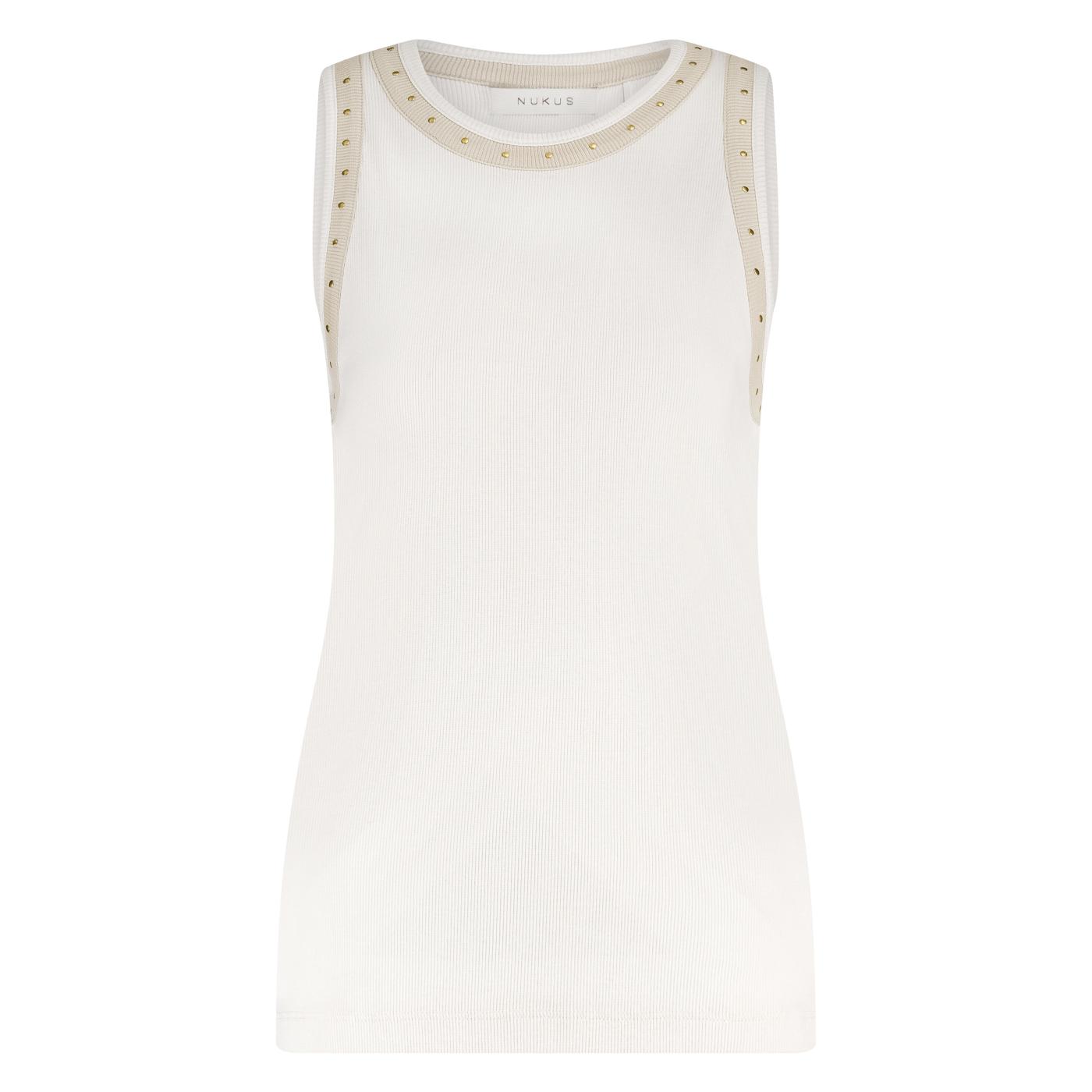 De Nice singlet is een mouwloze top met studs bij de neklijn en armgaten. De top sluit nauw aan op het lichaam. De perfecte basic voor jouw najaarsgarderobe.