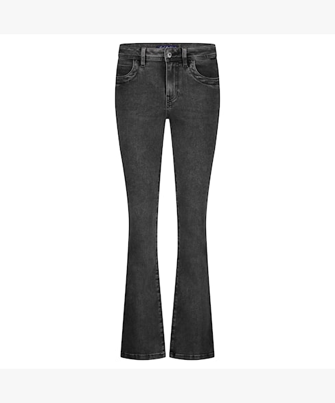 De Babette Black Snowwash is een flare jeans met een zwarte wassing en verweerde look. De jeans heeft een aangesloten pasvorm op de bovenbeen en heup en is uitlopend vanuit de knie in de perfecte flare. De Babette Black Snowwash is gemaakt van stretch denim voor ultiem comfort.