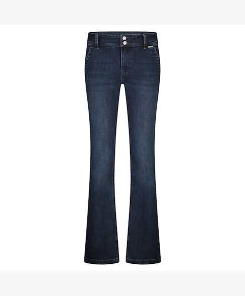 De Bibette Darkstone Dyestar is een flare jeans met een donkerblauwe wassing. De jeans is geverfd met een speciale duurzame methode, de Dyestar methode. Hierbij wordt er gezorgd voor een schonere denimproductie en minder chemisch gebruik. De Bibette Darkstone Dyestar heeft een aangesloten pasvorm op de bovenbeen en heup en is uitlopend vanuit de knie in de perfecte flare. De jeans heeft steekzakken en een dubbele knoopsluiting.