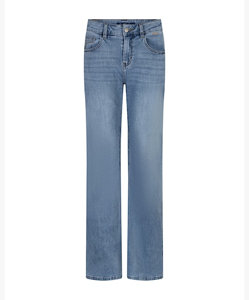 De Brielle Flare Denim light stone is een jeans met wijde flare pijpen. De jeans heeft een aangesloten pasvorm op de heup en is uitlopend vanuit het bovenbeen. De Brielle Flare Denim light stone heeft een hoge taille, een regular fit en een blauwe wassing.