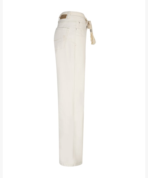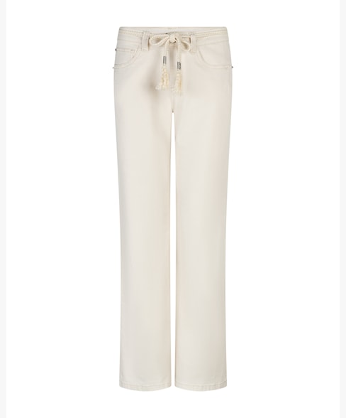De Colette & Belt Ecru is een wide leg jeans met een gevlochten koord. Dit geeft de jeans de perfecte zomerse touch. Deze denim is aansluitend op de heup en loopt vanaf de bovenbeen wijd uit. De Colette & Belt Ecru heeft een comfortabele hoge taille en is gemaakt van stretch denim voor ultiem comfort.