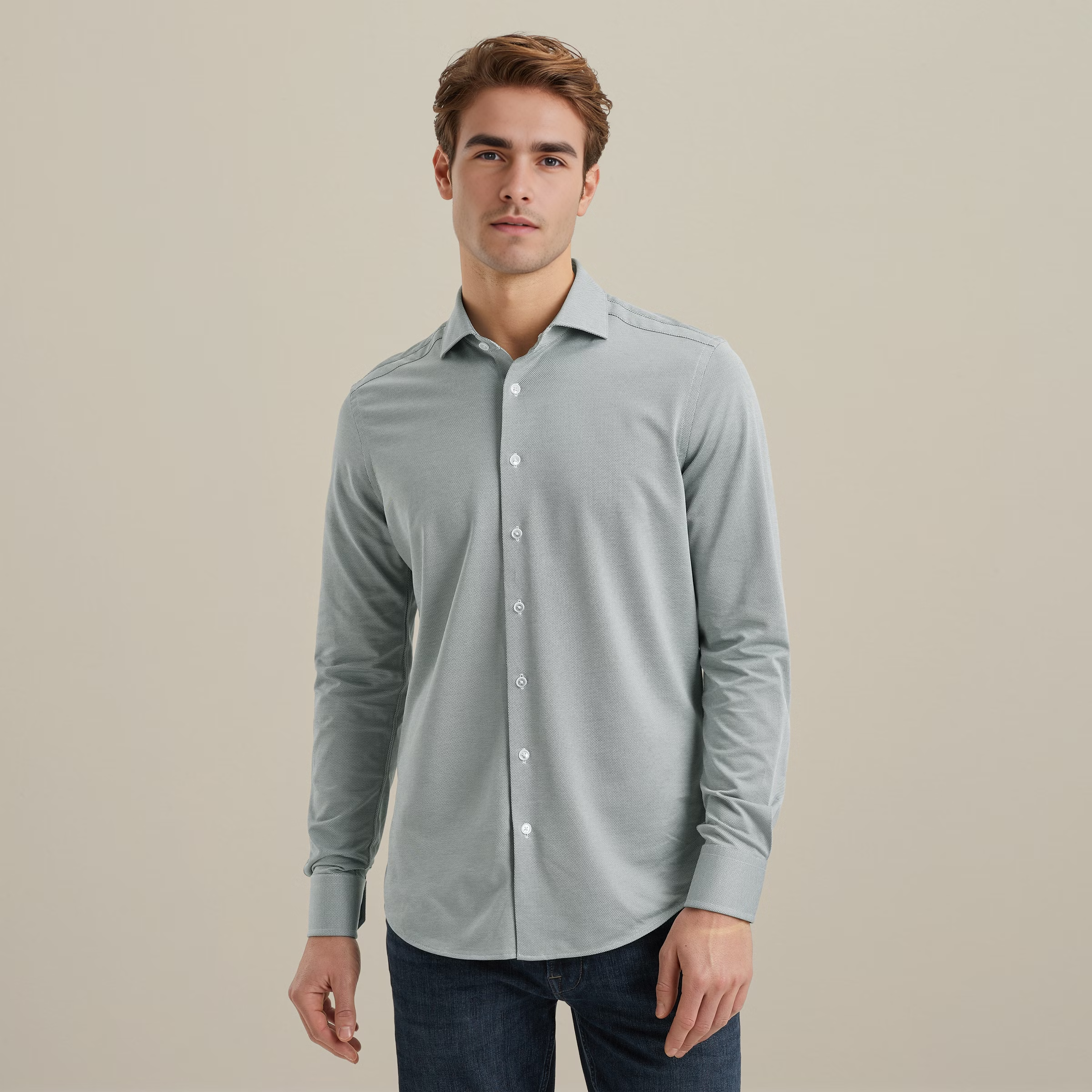 Vanguard Oxford overhemd van jersey – Dark Forest