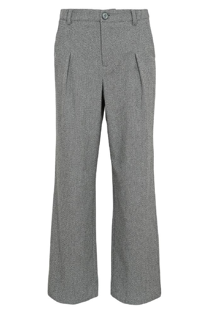 De Ranger broek heeft een super mooie wijd uitlopende fit met plooien. Hij komt in een supermooi herringbone patroon in een grijze kleur.